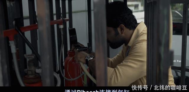 其中一个人趁机跑到车子后边,把装二氧化碳的罐子和水管接上。